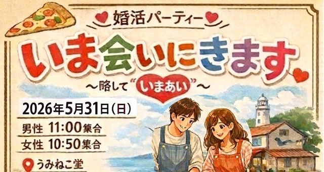 4月19日、松山市三津で婚活イベント『いまあいパーティー』を開催いたしました。ヴォーチェオリジナルの「4対4マッチングシステム」を導入し、一般参加型イベントとして実施いたしました。 当日は、クイズやゲーム、ピザのトッピン […]