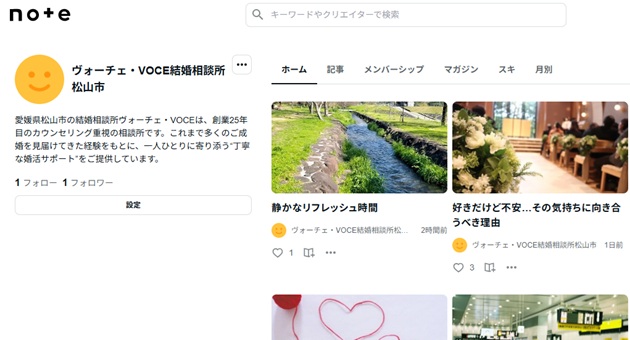 このたび「note」での発信をスタートしました!日々の取り組みや考え、ちょっとした学びなどを発信していきます。 気軽に読んでいただけたら嬉しいです。ぜひチェックしてみてください! ヴォーチェ・VOCE結婚相談所松山市愛媛 […]